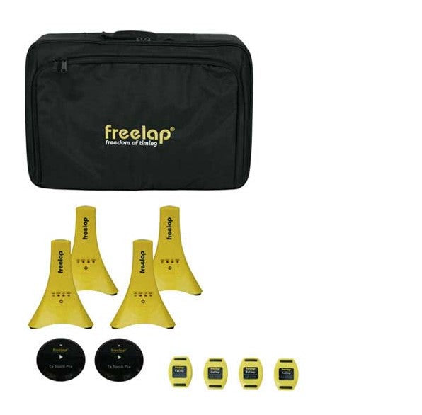 Freelap PRO BT424 système d'entrainement au sprint. L'athlète porte le FxChip BLE qui transmet sans fil les données au coach. Fontionne sur Android ou iOS. Deux transmetteurs FxChip BLE inclus.