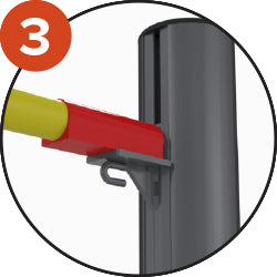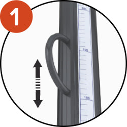 Rail coulissant avec poignée permettant un réglage simple et efficace de la hauteur. Poteaux-de-saut-en-hauteur-certifiés-world-athletics. Crochet sur le côté du curseur permettant de fixer un cordon d'entraînement.