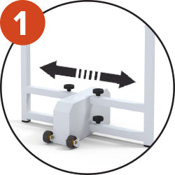 Poteaux de badminton centraux mobiles de compétition, en acier carré 40 x 40 mm avec montants doubles réglables en hauteur de 1,40 à 1,55 m, contrepoids 47 kg, thermolaquage blanc, utilisation avec tension du filet par sangle à cliquet.