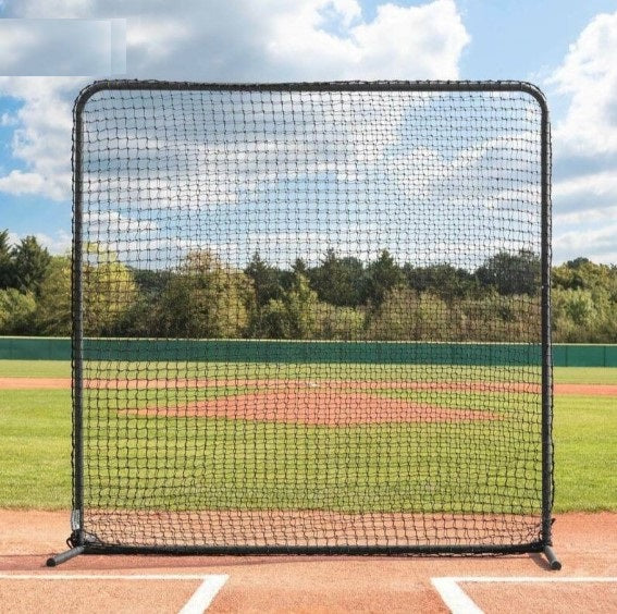 Écran protecteur pour pratique de baseball. Écran carré de protection de baseball FORTRESS de 7 pieds x 7 pieds avec un cadre en acier galvanisé de 1,5 pouces. Filet noir fabriqué à partir de ficelle poly de qualité #42. Le style taie d'oreiller signifie une double protection en filet, avec de larges pieds en acier pour plus de stabilité.