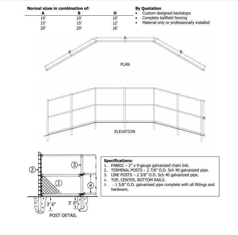 Spécifications des Pare-balles de Baseball en mailles de chaînes