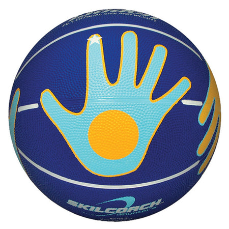 Ballon de basketball d'entrainement Skillcoach de Baden. Ce ballon d'entraînement est parfait pour les débutants, car on peut y positionner ses mains de façon à apprendre la bonne technique de lancer au panier.