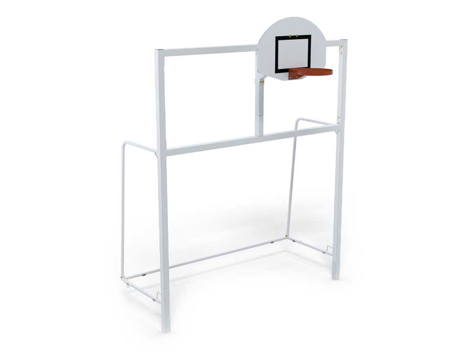Ce but comprend le filet sur 29 crochets de filet à l'intérieur du cadre arrière, pour installer facilement un filet de handball/mini foot. La partie supérieure du but est construite avec un but de basket dont la hauteur de l'anneau peut être réglée à 2,60 m ou 3,05 m grâce à des points de fixation doubles sur la structure. Ces buts sont livrés en standard avec un anneau de basket-ball anti-vandalisme et un panneau arrière en fibre de verre en forme d'éventail.