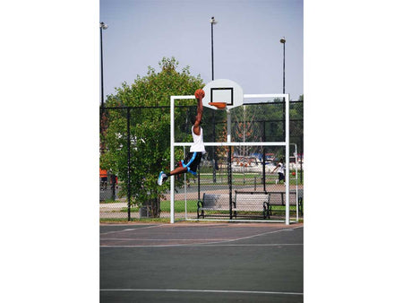Conception solide de l'anneau de basketball anti-vandalisme grâce à sa plaque arrière large de 150 x 142 mm et de 5 mm d'épaisseur. 2 jeux de trous de fixation pour 3,05 m et 2,6 m. 1 point de fixation crochet, résistant aux UV renforce la fixation du filet. Les patins en caoutchouc n'endommagent pas le sol et stabilisent le but sur un sol inégal. Utilisation extérieur ou intérieur.