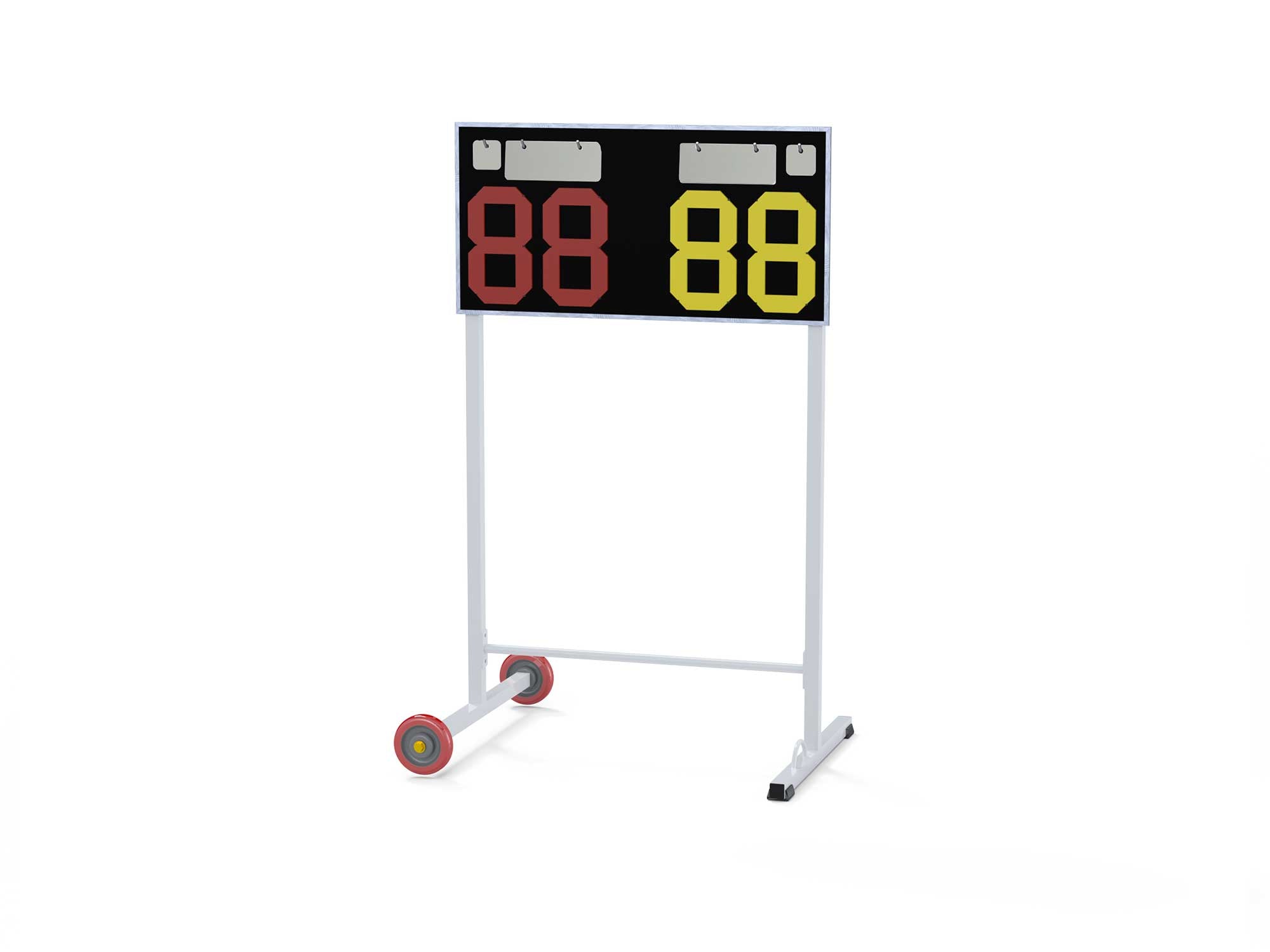Fait d'aluminium , de PVC et d'acier. Se transporte facilement à l'aide de deux roulettes qui ne marquent pas les planchers. Bout en PVC pour une stabilité en gymnase ou sur le terrain. Des poignées fixes rendent la manipulation et transport du tableau aisé.