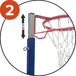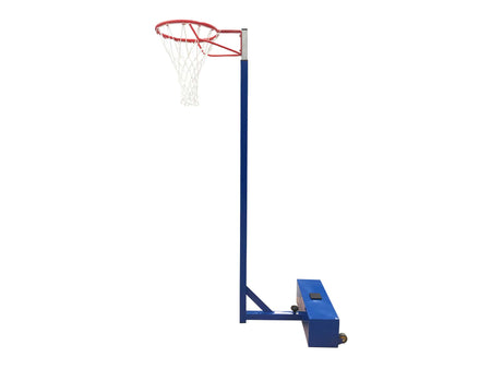 Poteau de basketball mobile hauteurs des anneaux réglables. Fabriqué en acier thermolaqué bleu 50x50mm. Tuyau en acier massif de 18 mm avec 2 renforts. Hauteur réglable 3,05m / 2,10m grâce à la vis de serrage. Livré avec : Anneau, Filet et base de contrepoids vide. Les roues en PVC permettent de transporter facilement le but.