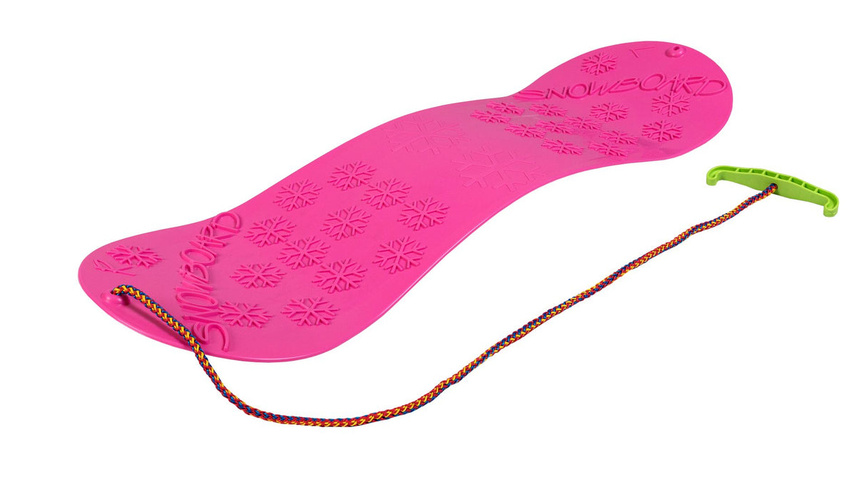 Planche à neige en plastique pour enfants de couleur rose et grandeur de 22cm X 72cm. C'est une planche pour amuser les enfants, tirer dans la rue enneigée et sur une petite pente à neige. Plusieurs couleurs disponibles.