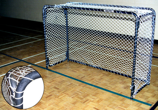 Ces buts de hockey cosom en métal sont facile à ranger pour un gymnase d'école. Il peut être utilisé autant à l'intérieur qu'à l'extérieur. Le diamètre des poteaux est de 1-1/4". Filet inclus.