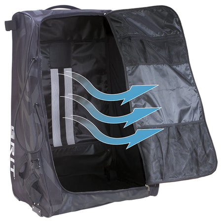 Le sac Sumo de gardien de but GT4 est l'ultime sac pour les gardiens de but. Le cadre du sac utilise la technologie Torsion éprouvé offrant de nombreux avantages : légèreté, flexibilité et durabilité. Les étagères intérieures pour le rangement du matériel comprend un compartiment pour le masque. Le sac Sumo de gardien GT4 présente de nouveaux graphismes noir/noir et est disponible en deux tailles 36" et 40".