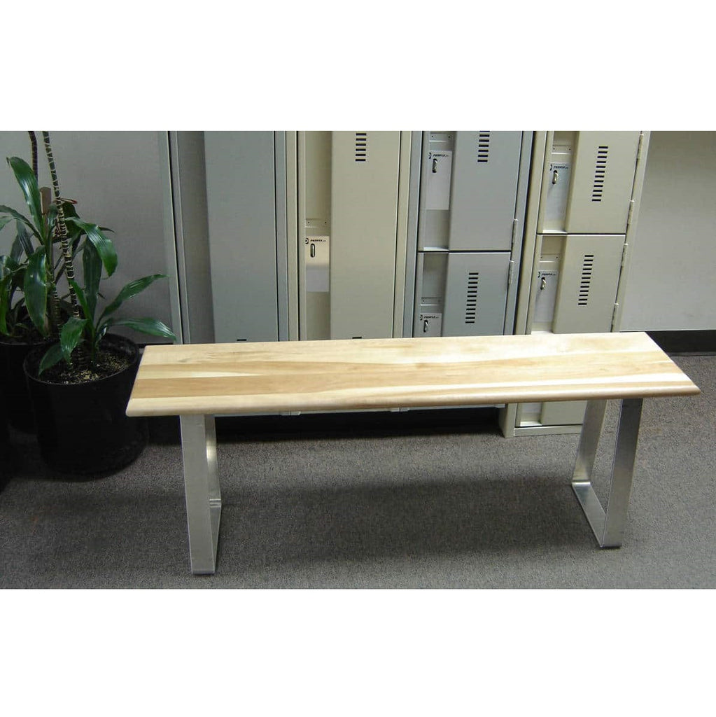 Banc de vestiaire en bois avec base en aluminium. Dessus en bois laminé. Fixe ou autoportant. Dimension de 48" ou 72" ou 120" de longueur et de 12" de largeur. Hauteur de 18", Poids 72 lbs ou 92 lbs. 3 style de pattes pour combler vos besoins.