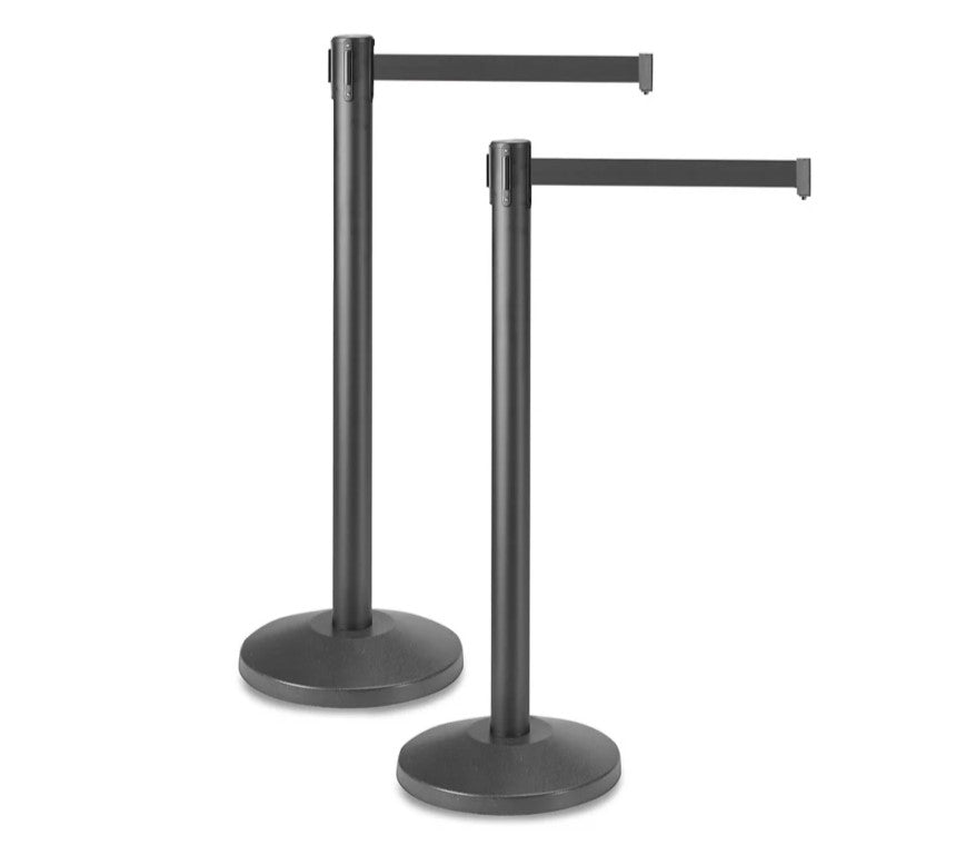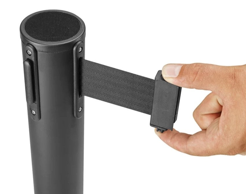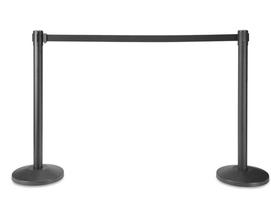 Poteaux barrières de foule intérieur à sangles rétractables de 10'. Barrière d'intérieur portative pour rediriger les foules. Sangle universelle auto retractable d'une largeur de 2 po. Se relie à tous les poteaux communs. Poteau en acier de calibre 18 avec base remplie de béton. La sangle extra longue permet de réduire le nombre de poteaux nécessaires. Prix à la paire.