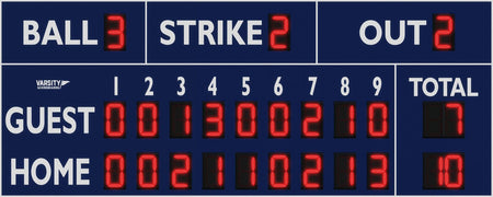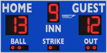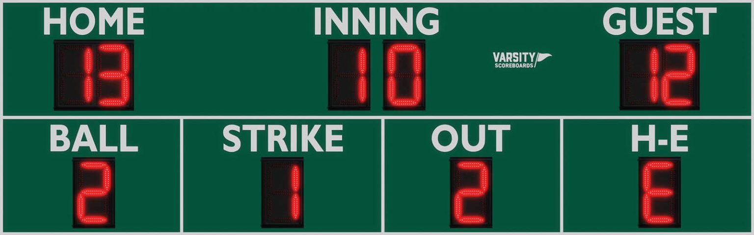 Tableau d'affichage extérieur Varsity compact comporte des chiffres LED de 15 pouces et affiche toutes les informations de base des jeux. Chiffres LED de 15 pouces avec écrans de protection. Armoire en acier galvanisé avec finition en poudre. Télécommande sans fil avec batterie interne rechargeable. Dimensions Small 8′ x 4′ x 8″. Poids 150 livres. Medium 16' x 5' x 8'' Poids 490lbs. Large 20' x 8' x 8''. poids 858 Lbs.