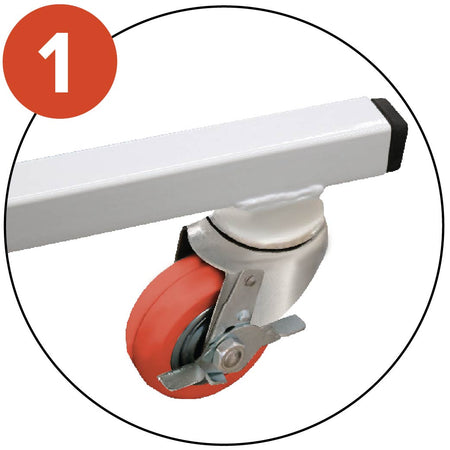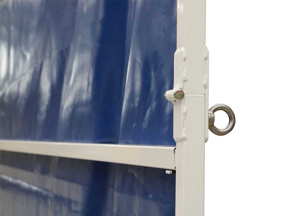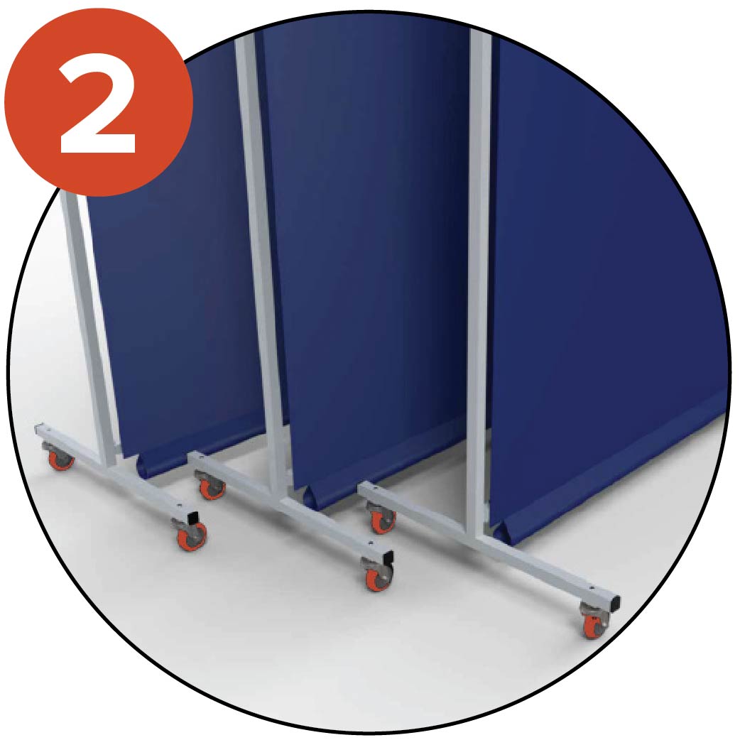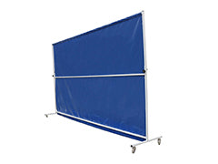 Cloison mobile créé un mur de séparation ou un arrêt balle. Dimensions : 4m x 2,5m. fait d'acier laqué blanc et rideau de vinyle. Facile à déplacer grâce aux roues pivotantes. Ces roues peuvent être verrouillées afin d'éviter tout mouvement indésirable.