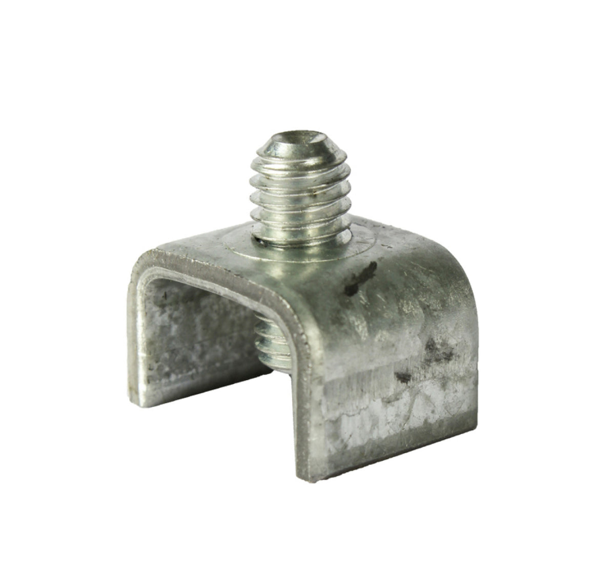 Stoppeur de crochet pour rail de rideau diviseur en acier galvanisé fabriqué pour utiliser avec nos rails en acier de grade 16. Avec une visse 3/16".