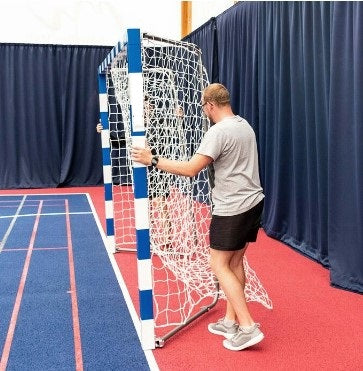 Fabriqué à partir d'aluminium carré renforcé de 80 mm. Inclus filet de but de futsal ou handball en HDPE blanc de qualité professionnelle de 3 mm d'épaisseur.