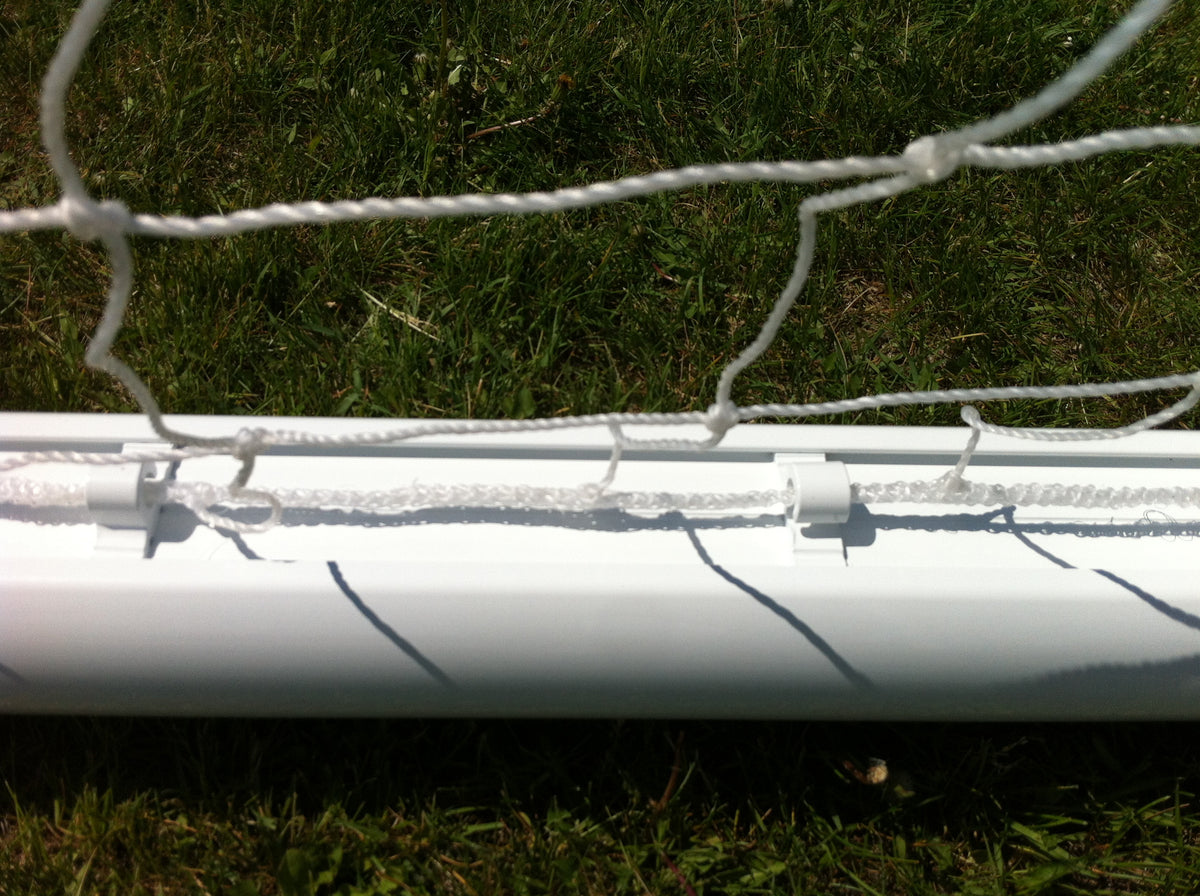 Barre de 4.5" de diamètre. Tube renforcé pour une plus grande endurance. Structure en aluminium légère pour un transport et un rangement facile. Assemblage facile en seulement 4 morceaux comparable à 8 pour un Kwik goal, moins de joint pour une plus grande stabilité et solidité. Attache de filet en aluminium plus solide et durable que les clip de plastique. Ancrage permanente ou semi permanente aussi disponible. Peinture de poudre cuite blanche de première qualité. Vous n'aurez pas à repeindre votre but à chaque année.