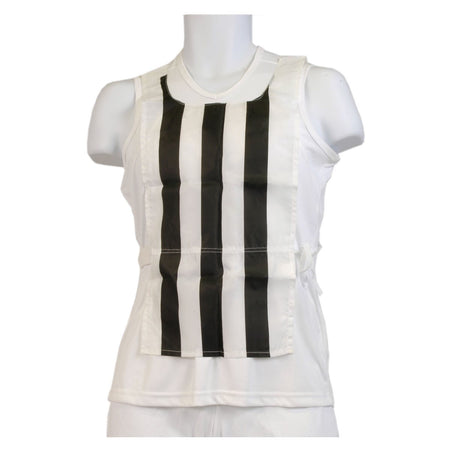 Dossard d'arbitre en nylon pour tout sport. Dossard Junior ou senior de nylon rayé noir et blanc, élastique d’un côté, Velcro sur l’autre.