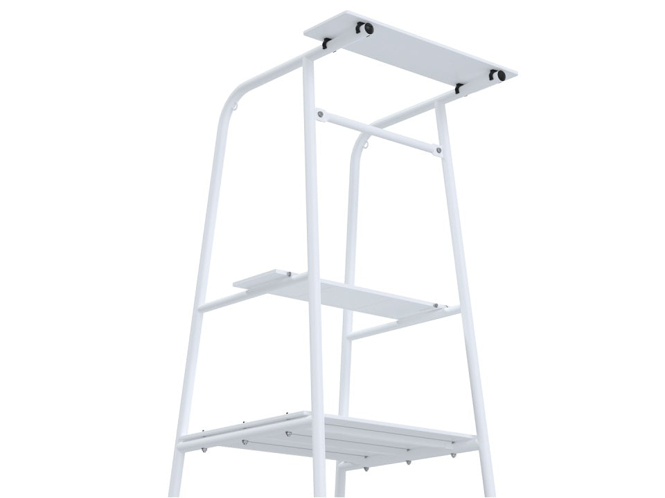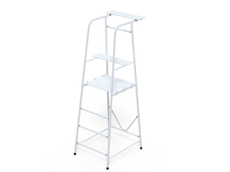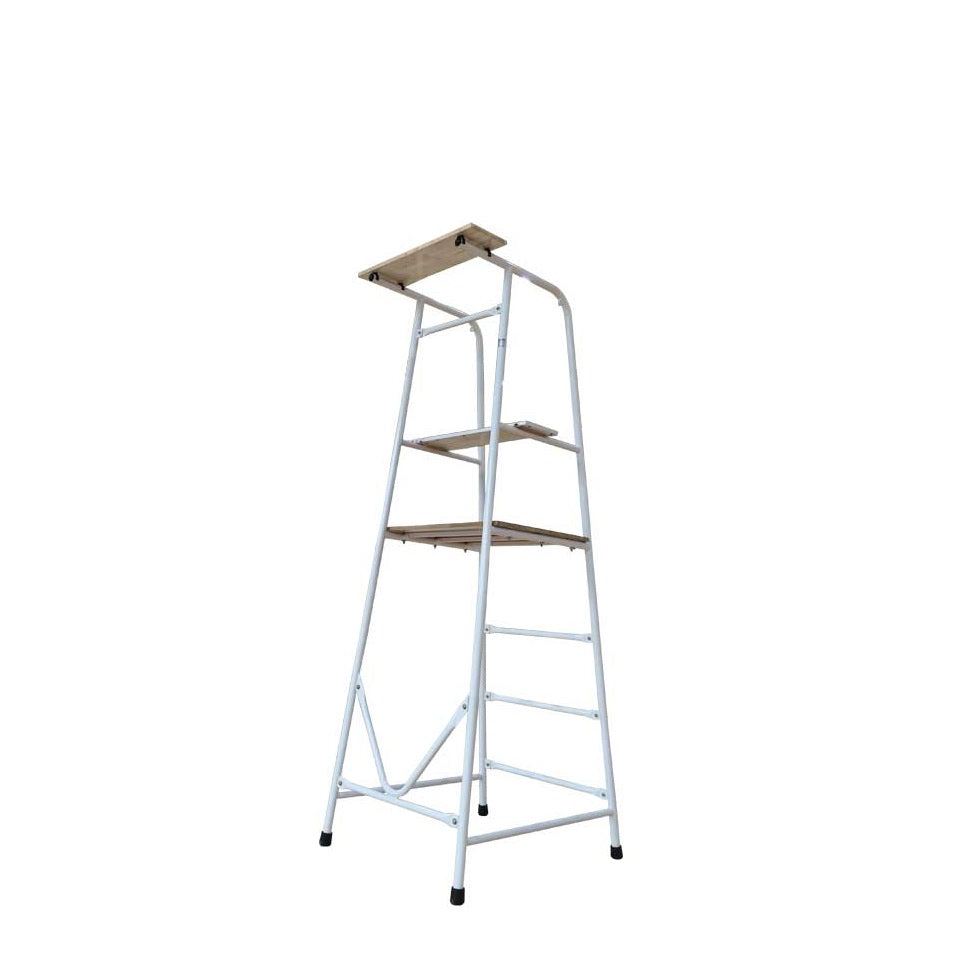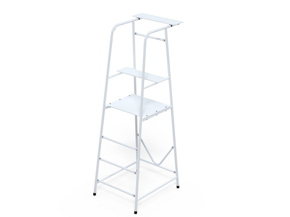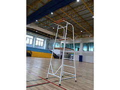 Podium d'arbitre de volleyball fait d'acier galvanisé et peint d'un après au jet de sable blanc. Plateforme à 1.3m (51") et hauteur de la tablette à 2.4m. (94.5"). Utilisable à l'intérieur comme à l'extérieur. Siège de pause au bas de la plateforme. Patte avec embout protecteur de plancher.