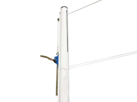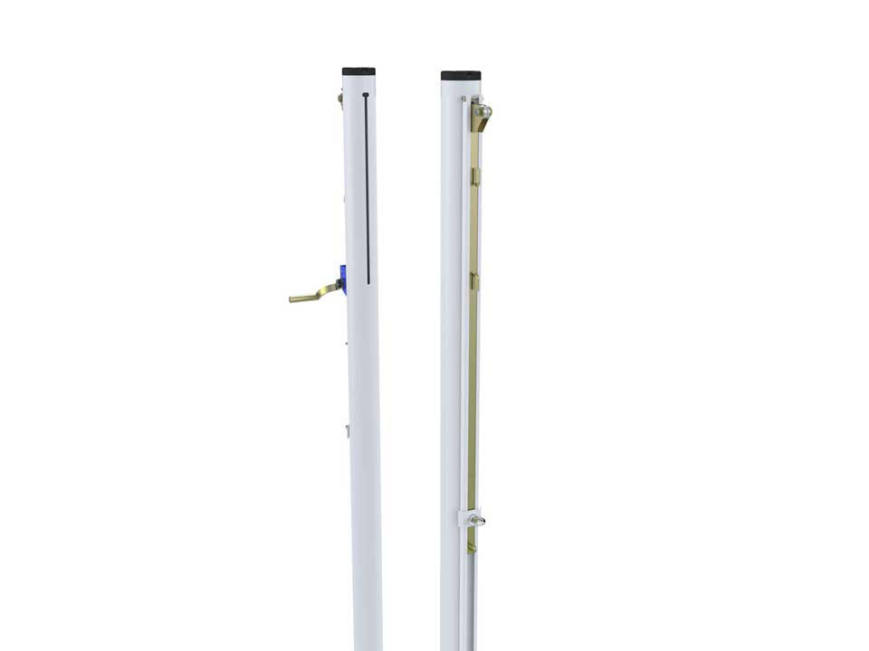 Poteaux de volleyball ajustable. Poteaux de compétition de volleyball en acier galvanisé de 90mm de diamètre. Système de tension par treuil. Facilement ajustable en hauteur de 2.00m à 2.45m. Peinture plastifié blanche. Intérieur ou extérieur pour beach volleyball.