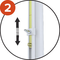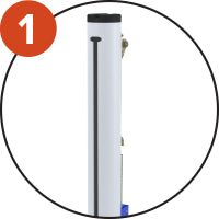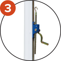 Réglette coulissante dans le rail permet un réglage simple et efficace de la hauteur. Système de tension rapide et résistant. Ruban métré adhésif sur le poteau