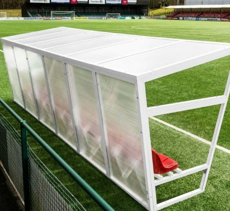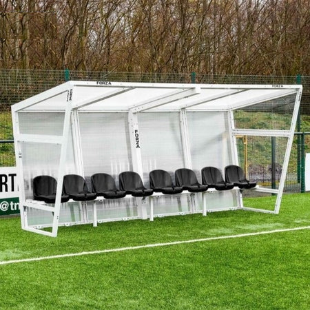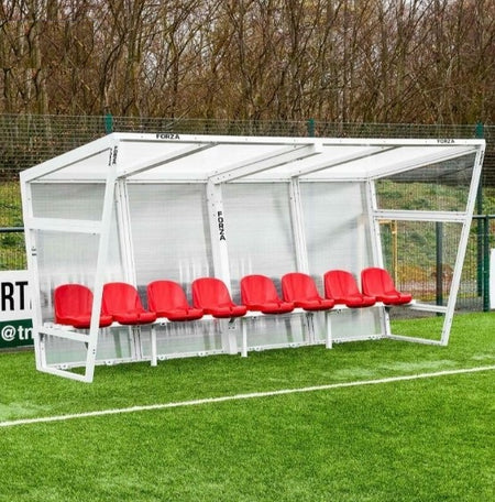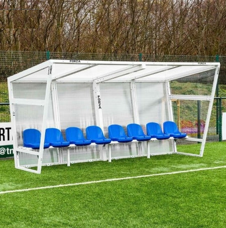 Abri de joueurs en aluminium de Forza Euro. Plusieurs tailles et couleurs de sièges disponible. Abri robuste et rapide à assembler. Construit en aluminium de 50 mm avec une entretoise de renfort de 80 mm, ce qui en fait l'abri le plus solide disponible. Fourni sous forme de panneau pré-assemblé avec du Perspex incassable de 5 mm pré-attaché – pour un assemblage beaucoup plus rapide.