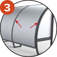 Offert en hauteur de 1,6m (63") ou 2m (79") et choix de longueur pouvant accueillir entre 3 et 15 personnes. La profondeur des abris est de 0.6m pour les 1.6m et de 0.62m pour les abris de 2m de hauteur.