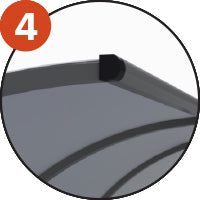 Rail d'assise en aluminium renforcé. (Siège PVC avec ou sans dossier sur demande). Les protections arrières sont insérées dans des gouttières qui laisse écoulé l'eau de pluie.