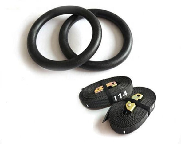 Ces anneaux de gymnastique avec sangles ajustables sont de qualité supérieur pour vos entraînements de cross fit et fitness autant à la maison qu'au gym. Sangle fait de nylon robuste d'une longueur de 15' et peut soutenir jusqu'à 880lbs! N'oubliez pas votre craie de magnésium!