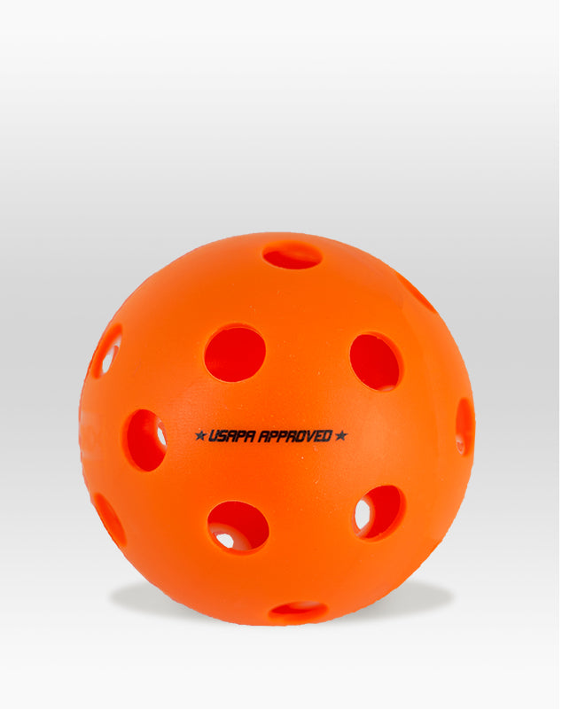 La balle équilibrée de qualité supérieure est stratégiquement alignée avec des trous percés avec précision.  Les balles d'intérieur offrent un motif de trous plus grand et moins de rebond sur les terrains intérieurs, tels que les surfaces en béton ou les sols des gymnases. Les balles répondent aux exigences de USA Pickleball (USAPA) pour les tournois de pickleball en plein air.