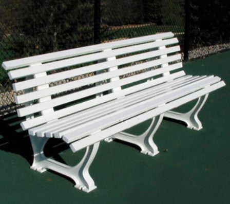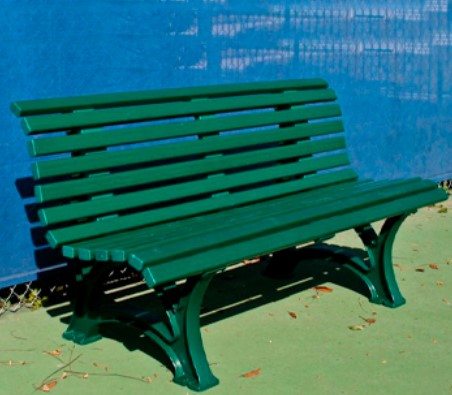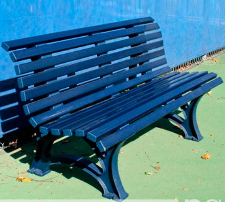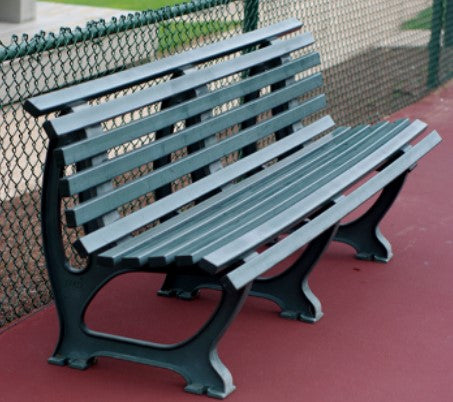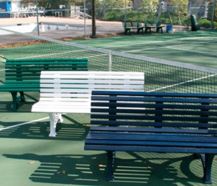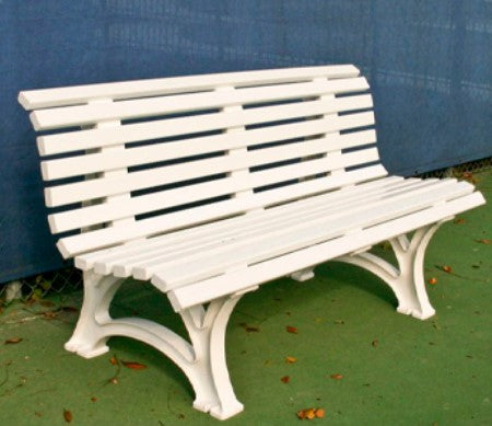 Banc de court deluxe offert en longueur de 5 pieds ou 6.5' avec assise et dossier profilés présente une ingénierie allemande de qualité et est construit à partir de polypropylène haute densité et de PVC pour les rendre robustes et capables de résister aux éléments. Ce banc peut être boulonné sur n'importe quelle surface dure pour une installation permanente.