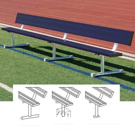 Banc de joueurs en aluminium de couleur. Les planches du siège mesurent 10" de large avec une surface nervurée antidérapante. Les planches sont en aluminium anodisé et ne déteignent pas sur les vêtements. Livré avec des embouts de sécurité.