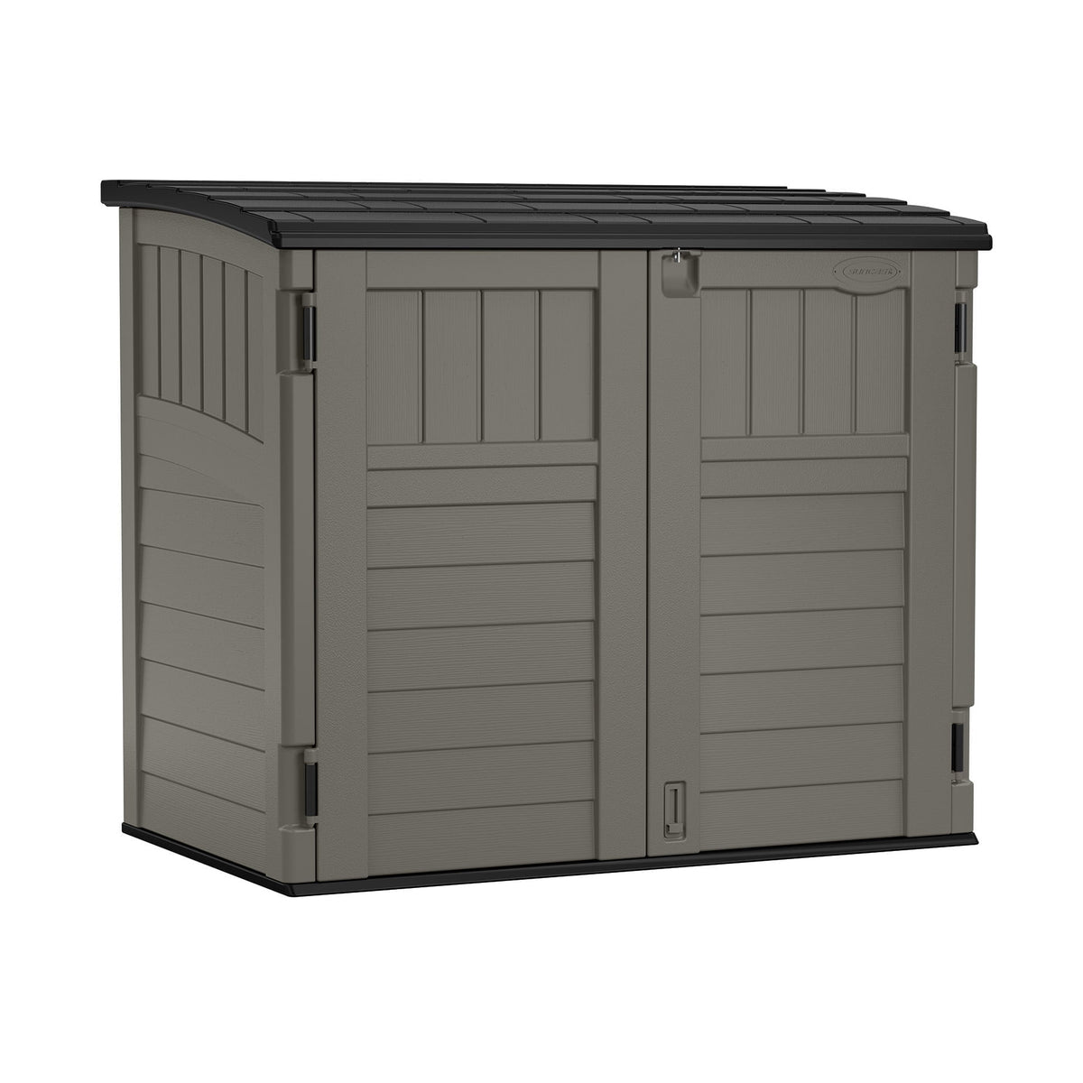 La boite de rangement Suncast® peut être installé facilement n'importe où. Elle peut être vissé au sol et barré à l'aide d'un cadena. Lors de l'utilisation, elle est facile d'ouverture puisque le dessus s'ouvre ainsi que les porte avant. Fait en plastique ultra-résistant aux 4 saisons et au gel.