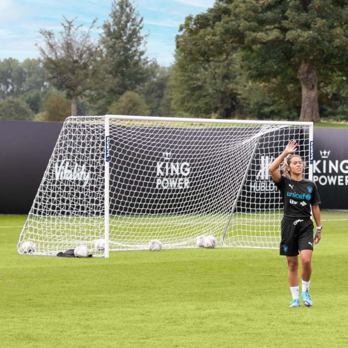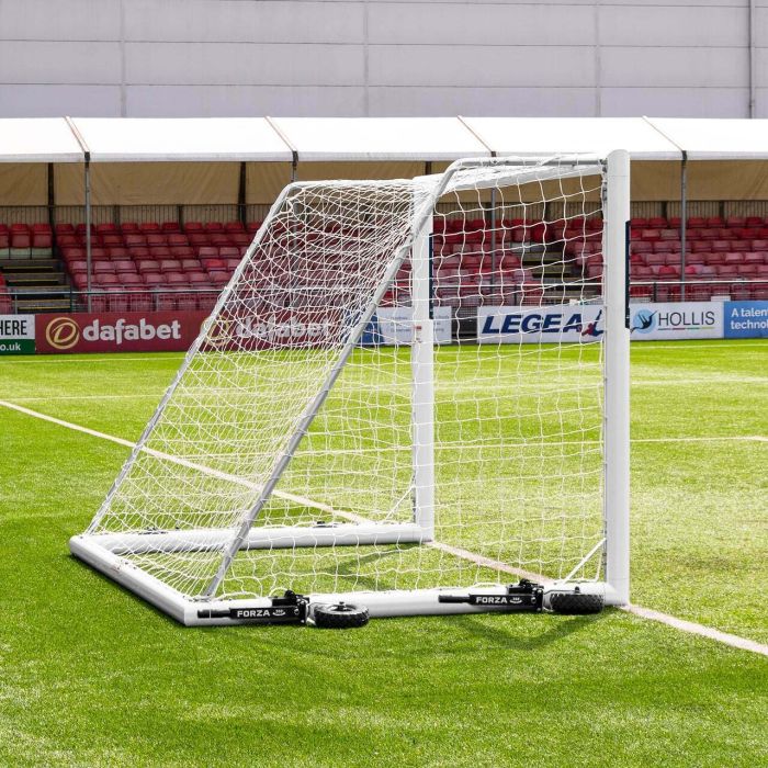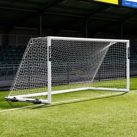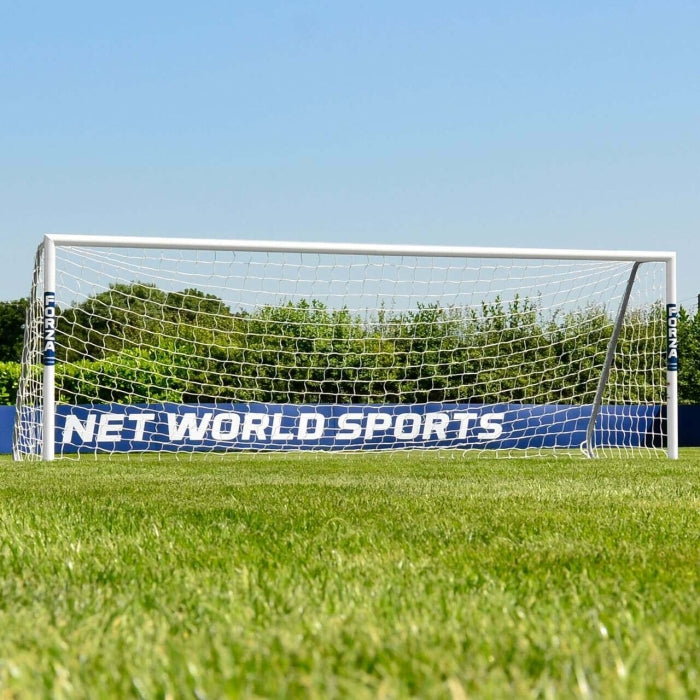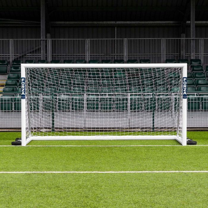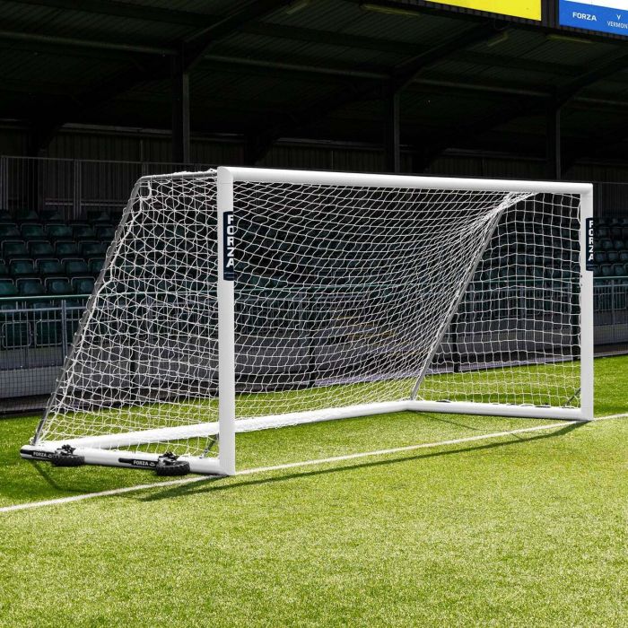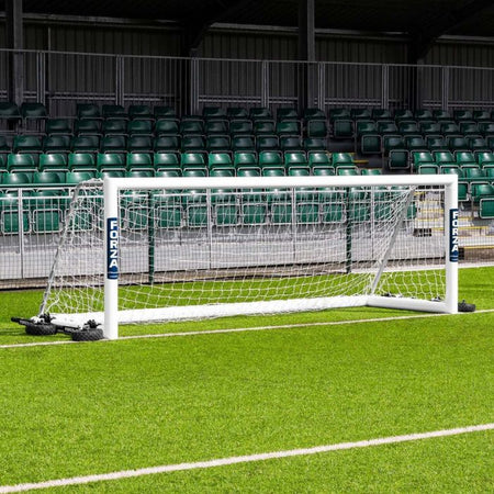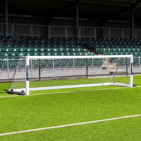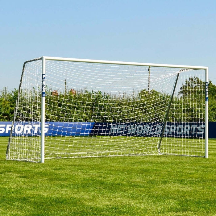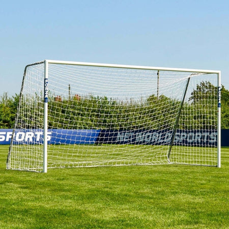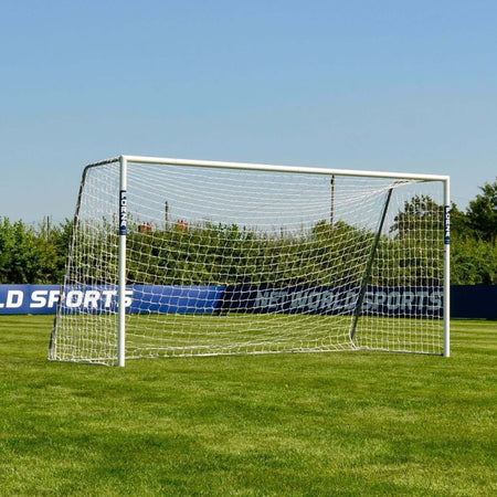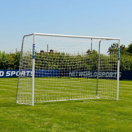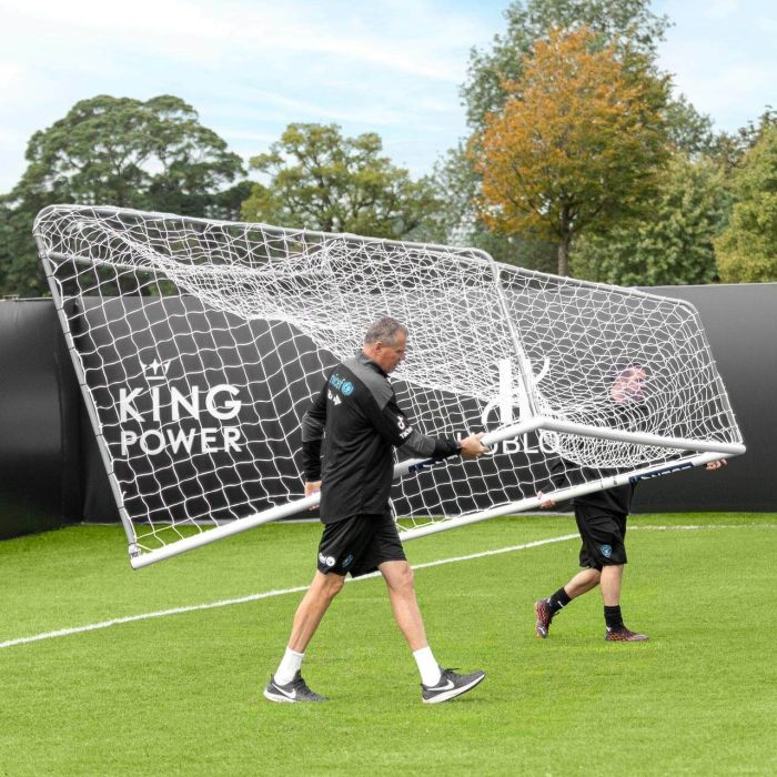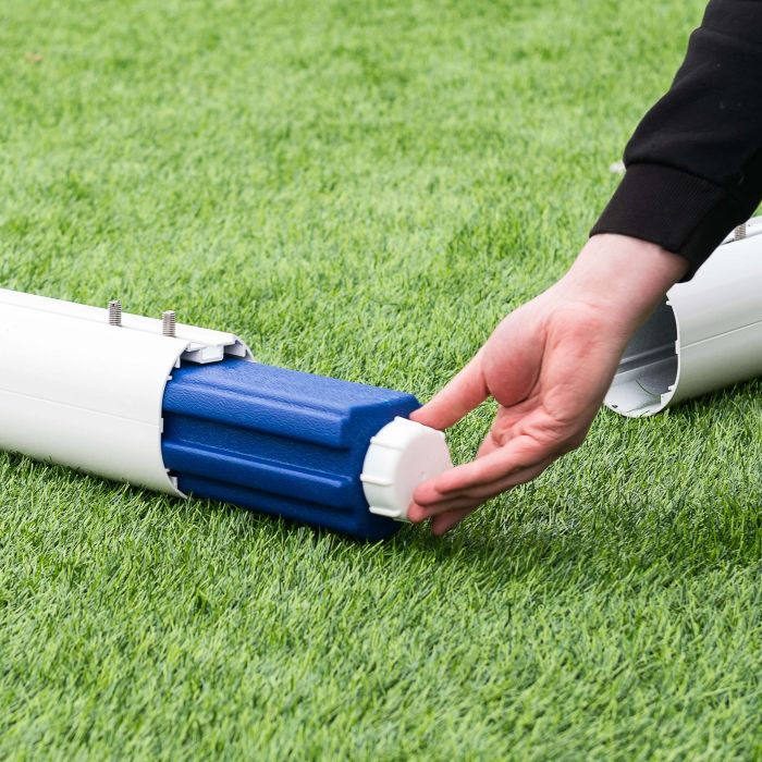 Le filet de but de football est traité contre les UV et résiste à la pourriture (peut être laissé à l'extérieur). Les clips de filet de sécurité de style Twist & Lock en nylon fixent solidement les filets dans le canal interne arrière du poteau de but. Le but est résistant aux intempéries, nécessite peu d'entretien et peut être utilisé sur toutes les surfaces, y compris les terrains en gazon naturel et en gazon synthétique.