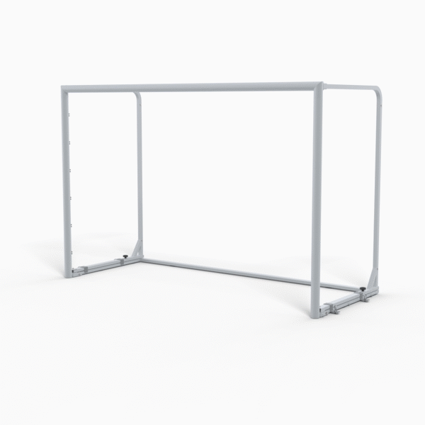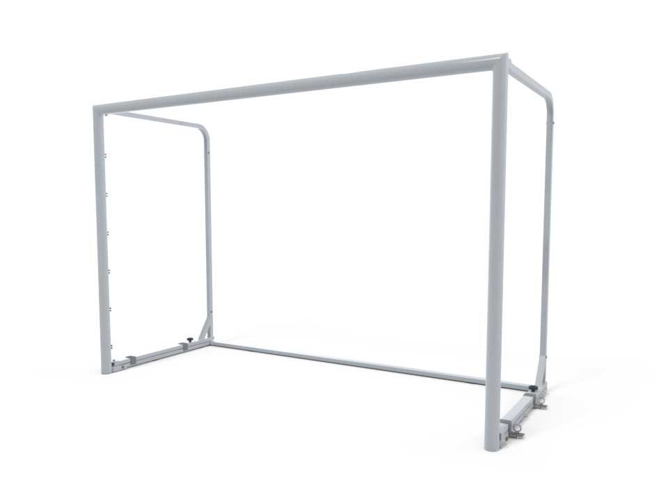 But de Futsal pliable Dimensions : 3,0 m x 2,0 m. Cadre avant en aluminium Ø 80 mm. Conforme NF EN16579. Barres arrière et barres de sol en 60x30mm et 40x40mm. Livré avec systèmes d'ancrage et option de poids pour installation sans ancrages. Répond aux normes FIFA. Les joints d'angle sont soudés directement sur les montants.