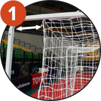 La profondeur des arceaux arrière a été élargie (1.2m) afin d’éviter que le ballon ne tape dans les arceaux et ne ressorte aussitôt. Ce but est simple à transporter tout en aluminium, il est facile à stocker car entièrement repliable. Des patins en caoutchouc stabilisent le but sur des sols irréguliers. Les charnières sont dotées d’une butée en caoutchouc afin d’éviter tout retournement des arceaux, du cadre au sol et de limiter les chocs.