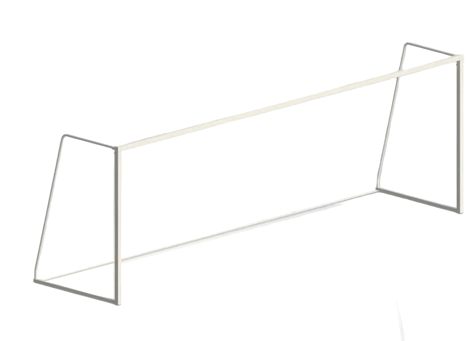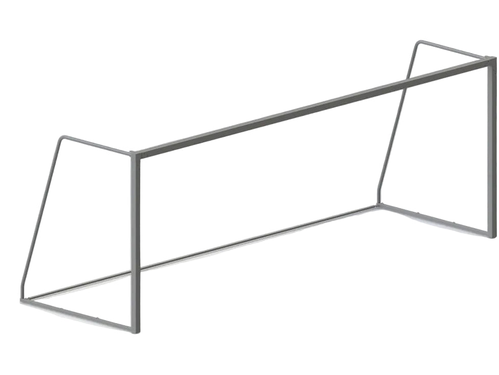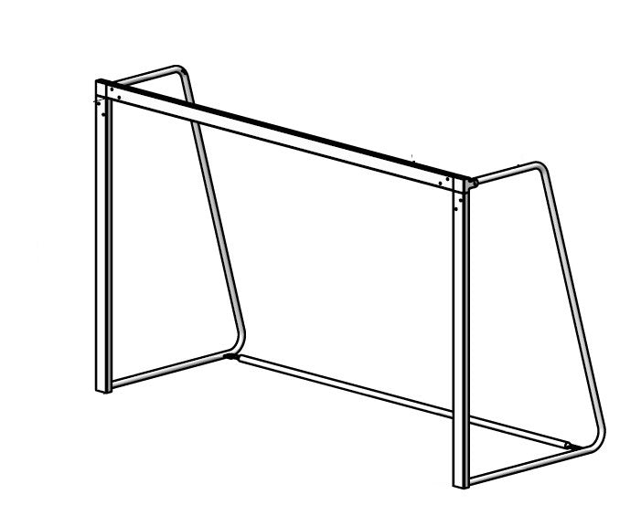 Pour les buts senior et junior la façade des buts sont fait de tubes en acier de 3" x 3" x 1/8" de paroi reliés aux coins supérieurs par des coudes d'aluminium à l'aide e boulons hexagones de 5/16". Pour les buts de mini soccer, les tubes sont de 3" x 1.5".