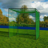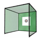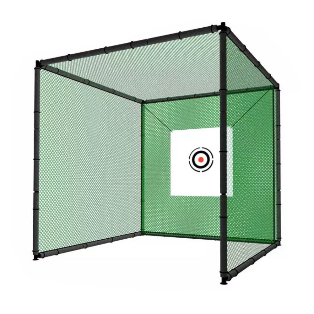 Cage de golf pro facile à installer parfait pour pratiquer votre élan dans votre cour ou pour vous réchauffer avant une partie. Structure en acier peinte au jet de sable et filet résistant au rayon du soleil. Filet de 2.3mm avec un fond doubler. 10ft L x 10ft W x 10ft H. Poids de 110lbs, recommander de démonter ou sécuriser en cas de grands vents.