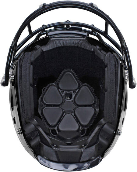 Système de stabilisation du casque (HSS) avec stabilisateurs intérieurs pour offrir une sensation de verrouillage du casque. Black Surefit Air Liner a une peau extérieure en TPU qui donne au casque un toucher doux. Doublure de couronne non gonflable de 3/8". Coussinet frontal en TPU avec revêtement en EVA moulé. Coussinets de mâchoire de 1/2" fixés avec du velcro. Le pare-chocs nasal Twist Release facilite la fixation du masque facial. Comprend une jugulaire souple. La couleur de la jugulaire peut varier en fonction de la disponibilité.