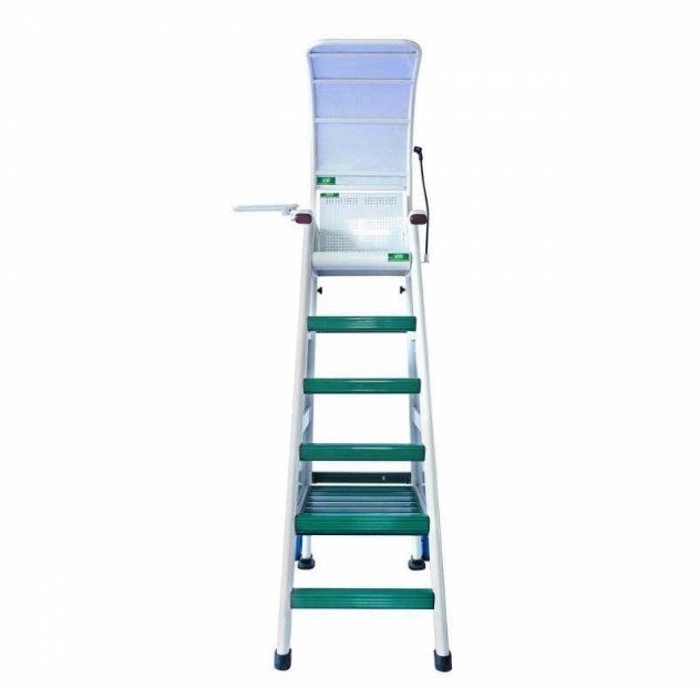 Chaise d'arbitre de tennis ITF. La chaise est dotée d'un cadre 100 % résistant à la pourriture et à la rouille. Conception de chaise à pieds évasés pour une stabilité supplémentaire. Conforme à tous les règlements des tournois ITF. Facile à transporter et à manœuvrer avec base à roulettes. Disponible en vert, noir, bleu ou blanc en standard. Le revêtement en poudre stable aux UV empêche également la détérioration de la couleur pour garantir que la chaise d'arbitre conserve des couleurs éclatantes toute l'année.