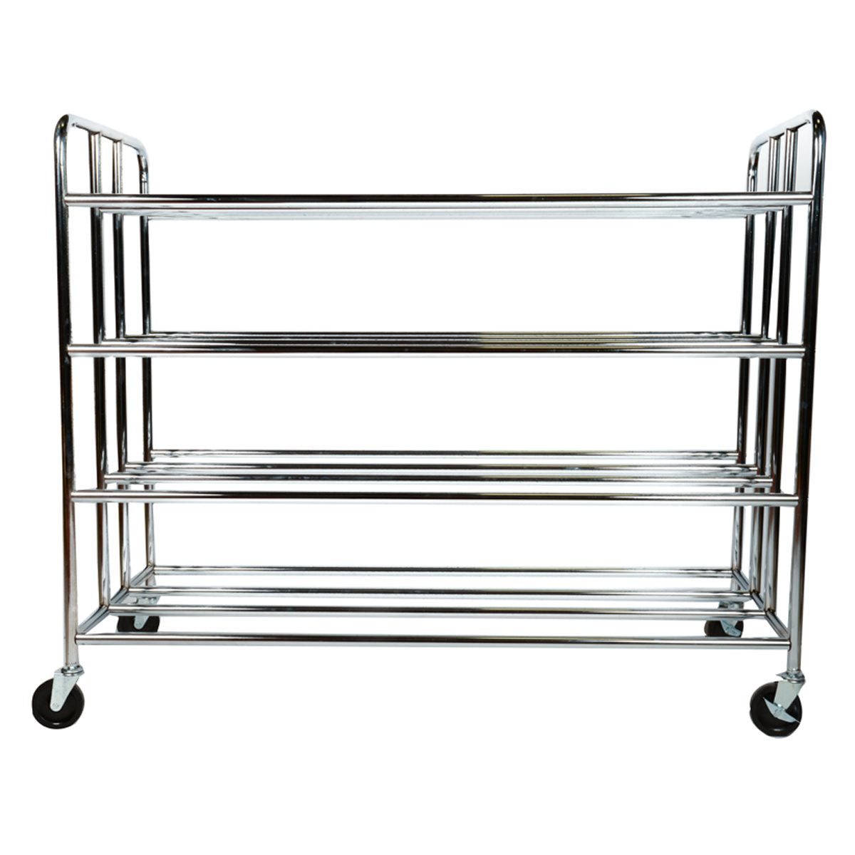 Chariot à ballons en tube d'acier sur 4 roues. le chariot contient jusqu'à 40 ballons de basketball. Un chariot très solide parfait pour une utilisation institutionnelle. Tube en acier avec fini chrome. Roues non marquantes.