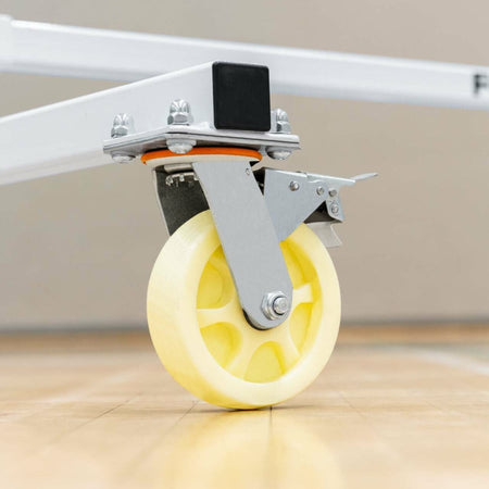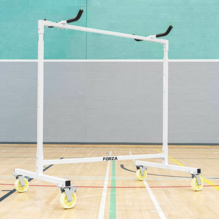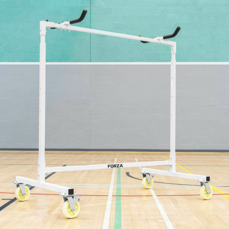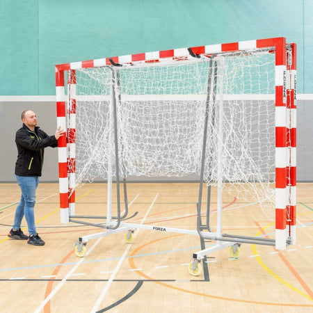 Chariot de but de futsal handball. Le chariot à buts réglable est conçu pour transporter 4 types de buts de sport pliables. Des crochets en caoutchouc facilitent le rangement. Conçu pour une maniabilité optimale, ce chariot est équipé de roues de freinage pour plus de sécurité. Ses roues et freins ne laissent pas de traces.