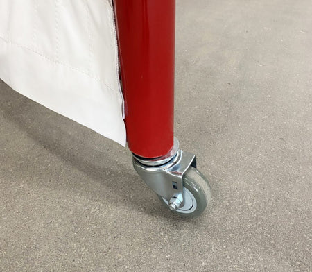Cette unité facile à utiliser, composée de 3 pièces, comprend : des chevilles en aluminium doubles et un support de barre inférieure en acier avec des roulettes pivotantes de 3 pouces.