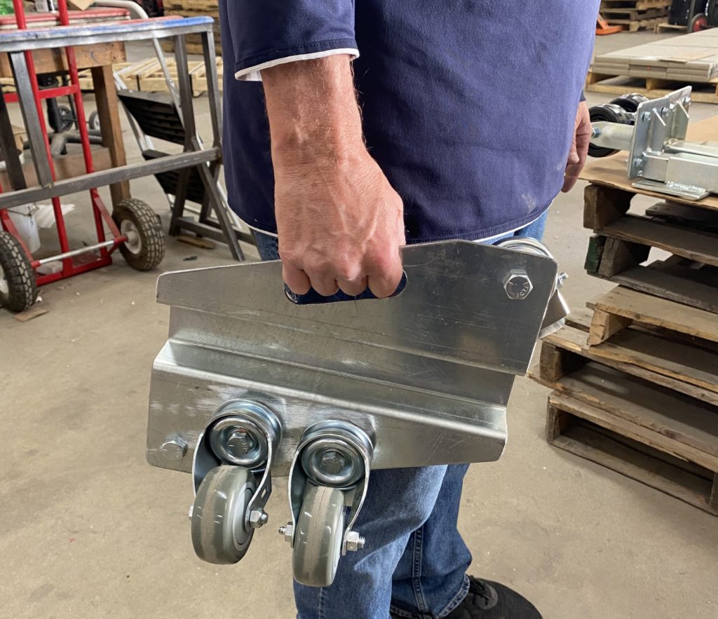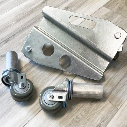 Le support est équipé d'une poignée facile à saisir et de trous pour les chevilles de roulettes afin de maintenir votre Caddie toujours en place.