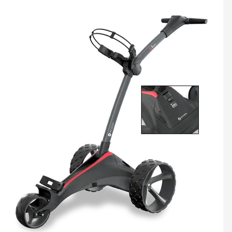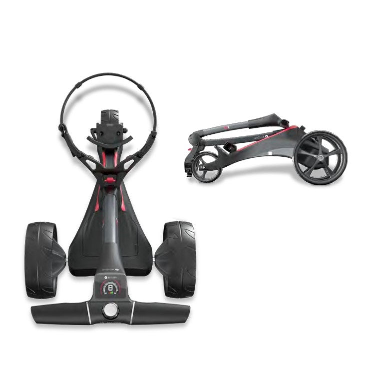 Chariot électrique S1. Simple et incroyablement facile à utiliser. Batterie sans câble avec déconnexion automatique. Pliage en 1 étape le plus rapide jamais réalisé. Port d'accès rapide pour le chargement intégré. Électronique haute puissance 28 V de nouvelle génération. Écran large LCD. Indicateur de vitesse et compteur de batterie. Contrôle de distance réglable (jusqu'à 45 mètres). Port de charge USB. Batterie au lithium légère. Roues d'inversion peu encombrantes. Moteur puissant et silencieux de 230 W.