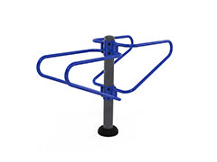 Barres parallèles classiques. 1,88m de long x 0,79m de large x 1,40m de haut. Fixation à ancrages au sol. Fait en acier galvanisé et peint bleu et gris anti corrosion. Deux hauteurs différents à l'utilisation 1,2m ou 1,3m. Couverture de PVC pour cacher les visses et écrous pour plus de sécurité.