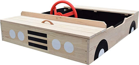 Carre de sable en bois en forme de voiture avec un couvercle