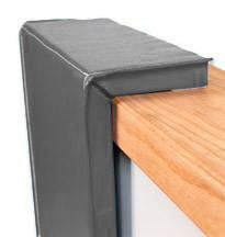 Disponible soit en polyuréthane haute densité de 2 pouces d'épaisseur ou de mousse polyéthylène très ferme de 1.5 pouces d'épaisseur. Revêtement composé de vinyle 18oz renforcé et traité contre la propagation des flammes et les bactéries. Velcro adhésif pour installation facile.