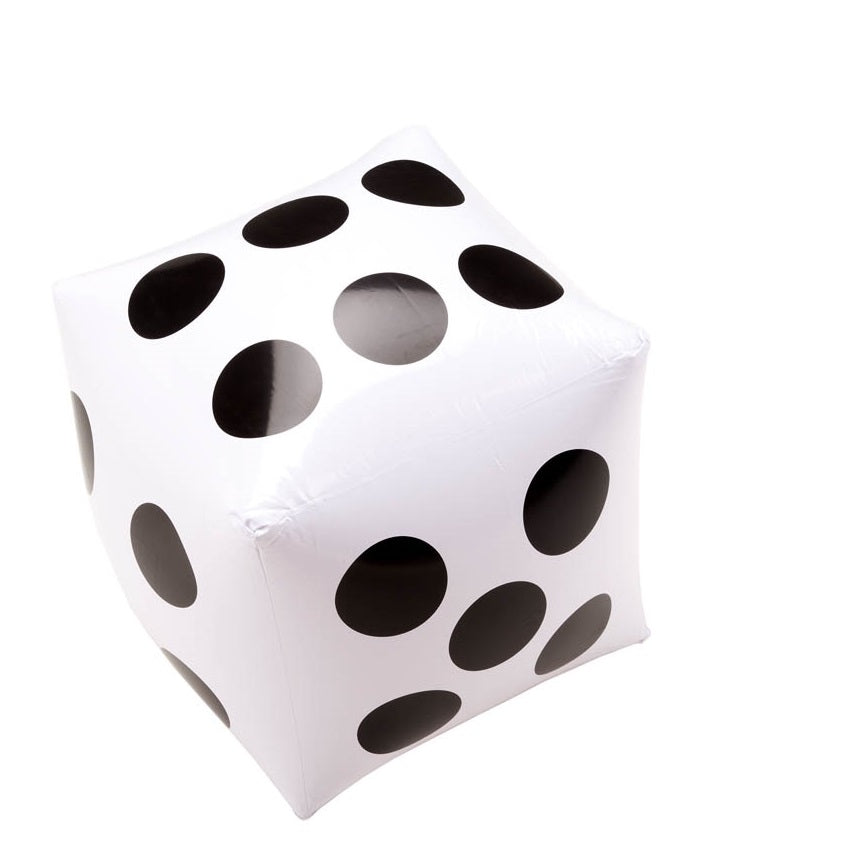 Dé géant gonflable de 17" couleur noir sur blanc.