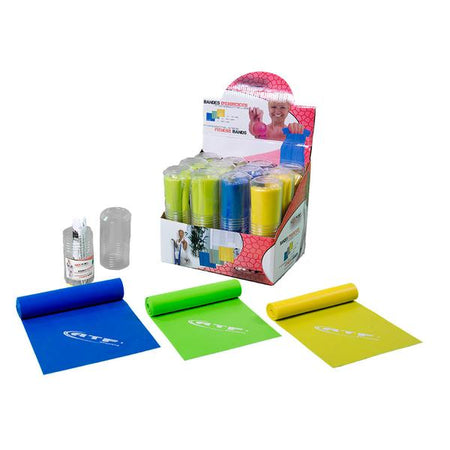 Cet ensemble contient 12 bandes élastiques d'aérobies de plusieurs couleurs parfait pour les étirements après l'entraînement. Elles ont toutes 59 pouces de long et offre 3 niveaux de résistances.