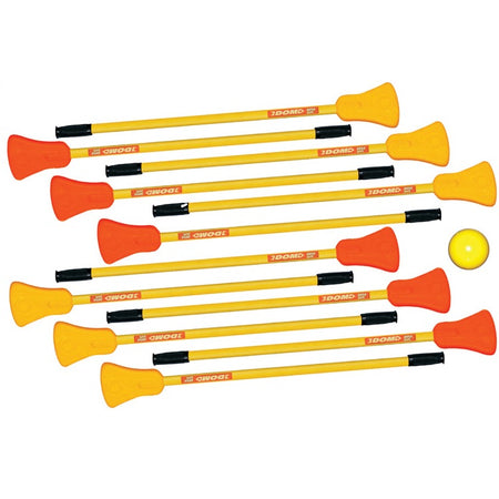 L'ensemble de ballon balai Supersafe est fait de mousse en polyurethane Skinex® les bouts arrondis procurent plus de sécurité. Le ballon est plus transporté que frappé. Bâton en polythylène. Poigné caoutchouc pour meilleure adhérence. L'ensemble comprend 6 bâtons de couleur jaunes et 6 bâtons de couleur orange. Le ballon est inclus.